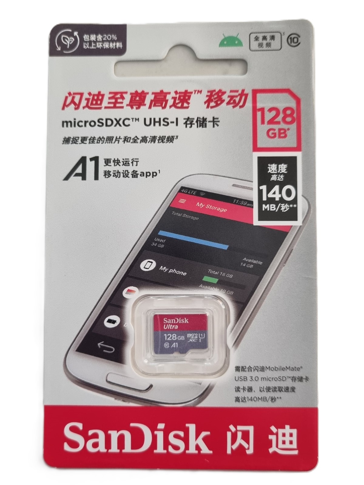 La tarjeta SanDisk microSDXC 128G SDSQUNC-128G-ZS3MN ofrece 128 GB de almacenamiento confiable y rápido, ideal para guardar fotos, videos y aplicaciones. Con tecnología UHS-I y una velocidad de lectura de hasta 140 MB/s, garantiza transferencias ágiles y un rendimiento óptimo para grabar en alta definición. Además, la línea MobileMate destaca por su durabilidad y portabilidad, siendo perfecta para dispositivos móviles, cámaras y drones.